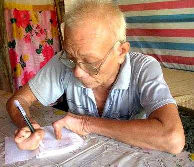 Ngừng một lát, anh nói tiếp: “Nghe cha kể lại là ông nội tui đã là một người rất có chí khí, không lùi bước trước khó khăn vì dị tật. Cho nên, từ ông nội đến cha tui dù không học cao nhưng đều viết chữ rất đẹp, làm gì cũng giỏi. Cha tui đã “truyền lửa” cho tui nên hồi đó đi học vất vả thế nhưng tui vẫn quyết tâm học. Hết lớp 7 thì phải nghỉ ở nhà phụ cha mẹ. Nhưng tui viết chữ không thua cha tui đâu”.