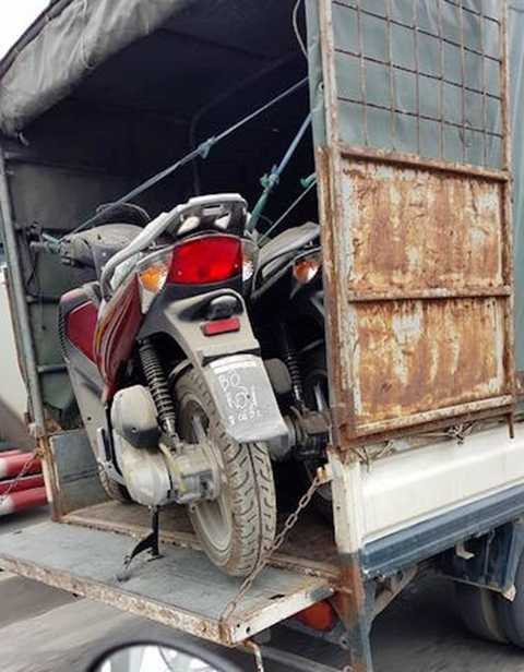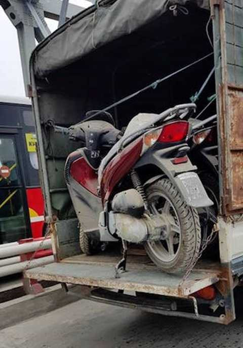 | Chiếc xe tải chở theo lô Honda SH 150i chưa đăng ký nhưng bụi bặm được nhìn thấy trên cầu Chương Dương, Hà Nội |