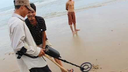 Ghi nhận tại bãi Sau (TP.Vũng Tàu) vào sáng ngày 2/2, khi những du khách bắt đầu đông dần ở bãi biển, chúng tôi quan sát thấy 1 “đội quân” đông đảo là những “thợ tìm vàng” đang cần mẫn rà tìm kim loại quý trên bãi biển. Vàng được nhặt đa phần do du khách tắm biển bất cẩn đánh mất.