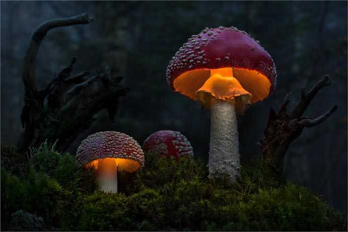 Một khóm nấm Mycera với ánh sáng êm dịu giống như những chiếc đèn ngủ thiên nhiên.