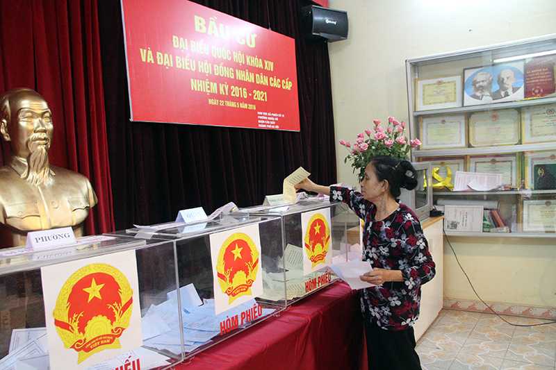 | Bà Trần Thị Thoan tự tay bỏ phiếu bầu cử |
