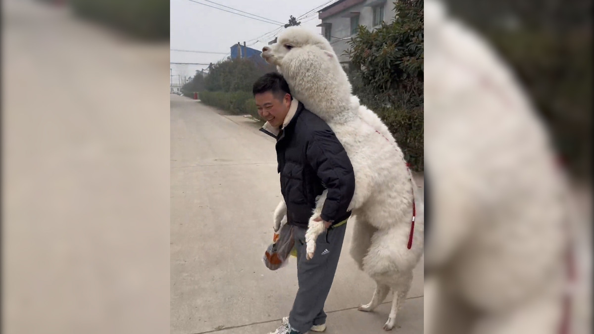 Bất chấp nỗ lực “giải thoát” của người đàn ông, chú lạc đà Alpaca vẫn cố bám lấy trên đoạn đường dài tại tỉnh Quảng Đông, Trung Quốc.
