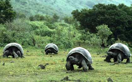 1835, nhà sinh học vĩ đại Darwin đã đặt chân lên hòn đảo này. Những chú rùa khổng lồ, với hình dáng khác nhau ở 12 hòn đảo khác nhau trên quần đảo này, đã đóng góp một phần vào sự nghiệp bất hủ của ông, là cảm hứng để ông viết thuyết tiến hóa. Nhìn vào mai những chú rùa này, các nhà sinh vật học có thể thấy được sự tiến hóa của muôn loài. Chúng là loài đã sống sót kể từ kỷ nguyên tiến hóa thứ hai.