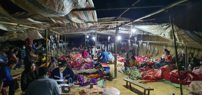 Trưa 14/3, gia đình ông Lù A Vàng có tổ chức đám cưới cho con gái với tổng số 420 người tham gia. Có 70 mâm cỗ gồm 11 món, trong đó, có ba món là trứng chim cút luộc, nước uống và quýt ngọt là mua ở ngoài. Các món ăn còn lại được chế biến từ nguồn nông sản của gia đình sản xuất như lợn, gà, khoai tây, rượu trắng.