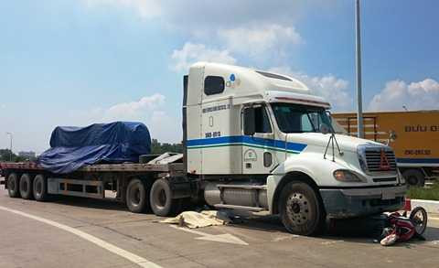 Lúc 8h sáng 4/6, trên đường dẫn từ đường cao tốc TP.HCM – Long Thành – Dầu Giây hướng ra đại lộ Mai Chí Thọ (phường Bình Trưng Tây, quận 2, TP HCM) xảy ra vụ tai nạn giao thông giữa xe đầu kéo container và xe máy.