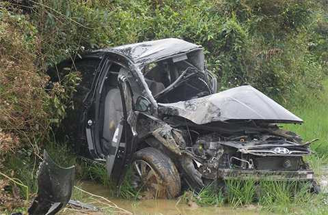 Do chiếc ôtô bị tông biến dạng nên lực lượng chức năng phải rất khó khăn mới đưa được thi thể của các nạn nhân ra bên ngoài.