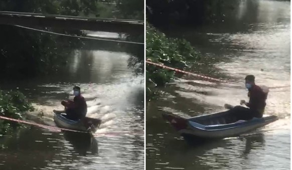 Nhựt cố tình vượt qua dây phong tỏa để ra ngoài. (Ảnh: Cắt từ clip)