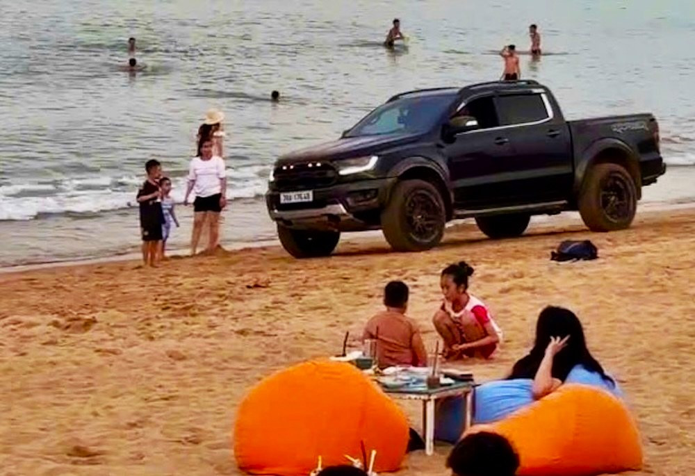 Trước đó, mạng xã hội Facebook xuất hiện 2 đoạn clip ghi lại cảnh xe bán tải chạy dọc bãi biển ở TP Tuy Hòa và TP Quy Nhơn. Những tài xế xe bán tải này ngang nhiên điều khiển xe tại những khu vực cấm, có rất đông người dân, du khách đang tắm biển và vui chơi.