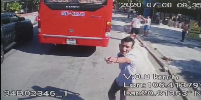Khi tài xế xe buýt BKS 34B-023.45 vẫn cố gắng điều khiển xe chạy đúng lộ trình, dừng đỗ đúng các điểm đón trả khách, thì tài xế xe khách BKS 34B-016.43 còn nhảy xuống chửi bới, dọa giết lái xe buýt, đe dọa không cho đón khách. Toàn bộ sự việc đã được camera hành trình của xe phía sau ghi lại.