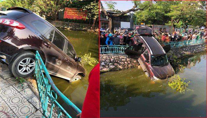 Khi đến đoạn đối diện với Đền Thủy Trung Tiên (phường Trúc Bạch, Tây Hồ, Hà Nội), xe này va chạm với một xe Innova BKS 30E- 975.14 rồi lao tiếp qua lan can, đâm xuống hồ Trúc Bạch.