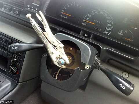 Người đàn ông liều lĩnh và coi thường luật pháp này đã kẹp kìm vào trục lái và dùng kìm xoay trái, phải để lái xe thay cho vô lăng. Không chỉ thế, chiếc xe do người này điều khiển còn có hai lốp bị thủng và không có còi.