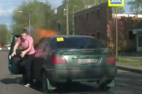 Vụ việc xảy ra trong thị trấn Velikiye Luki, Pskov Oblast, Nga. Hình ảnh trong clip cho thấy, lái xe là một phụ nữ . Cô điều khiển chiếc xe Citroen Xsara màu xanh lưu thông bình thường cho đến khi châm thuốc, ngọn lửa bùng lên bên cửa sổ và phần gầm xe.
