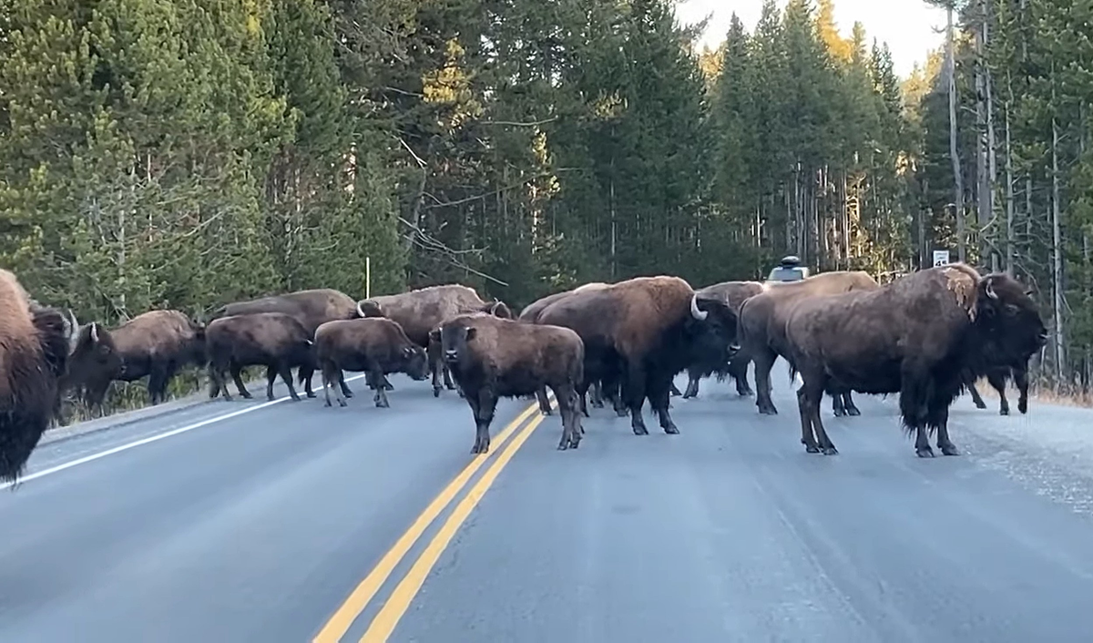 Trước đó, các quan chức tại Vườn quốc gia Yellowstone cảnh báo mọi người cẩn trọng bởi bò rừng sẽ di chuyển nhiều hơn khi mùa đông tới.