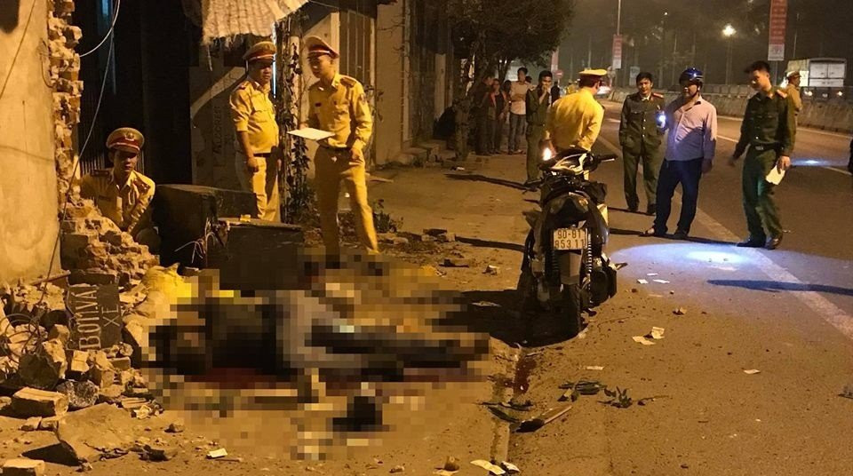 Sau cú đâm mạnh, bức tường gạch đổ sập, gạch văng tứ tung, phương tiện bị hư hỏng, 2 nam thanh niên chết tại chỗ.