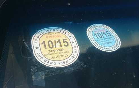 | Chiếc xe bị CSGT phát hiện dán tem đăng kiểm giả |