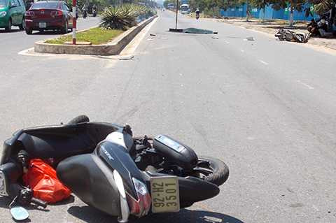 Vụ tai nạn khiến 2 xe máy bị văng ra xa hàng chục mét, nam thanh niên điều khiển xe máy BKS 92H1- 315.73 chết tại chỗ. Nữ nhân viên sân golf bị thương nặng phải đưa đi cấp cứu.