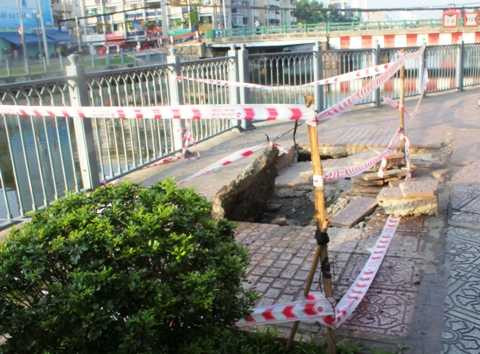 Một "hố tử thần" xuất hiện trên vỉa hè đường Trường Sa, đoạn trước cổng chùa Pháp Hoa và nằm sát vách kênh Nhiều Lộc - Thị Nghè có chiều dài 4,9 m, rộng 1,8 m, sâu 0,5 m và khoét hàm ếch phía dưới lòng đường.