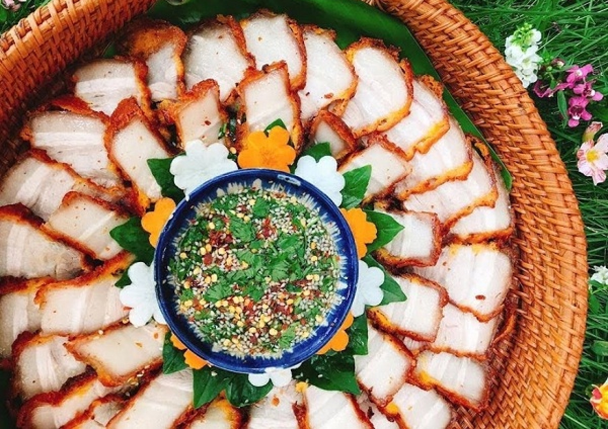 Pha nước chấm: Cho nước mắt, đường, một ít nước vào bát và khuấy đều; sau đó cho thêm tỏi, ớt, vừng rang, ngò thái nhỏ vào.