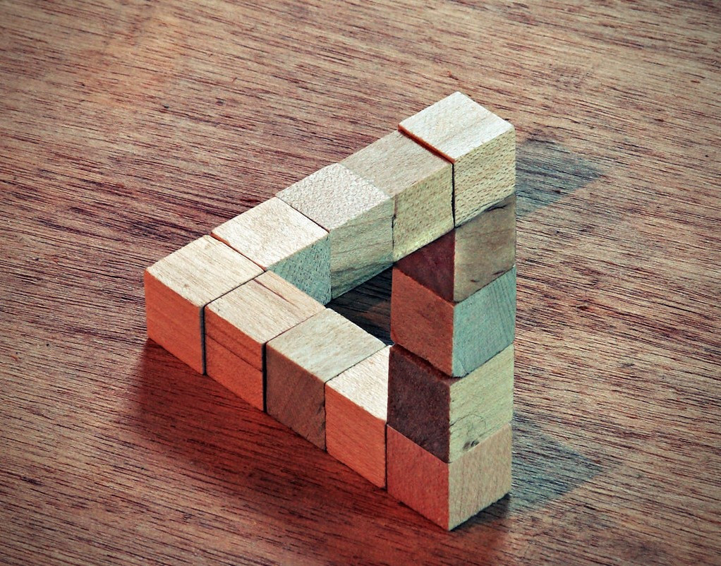 Một tam giác Penrose được tạo ra từ máy in 3D, rõ ràng nó không phải là một tam giác nhưng ở một góc cố định tam giác Penrose sẽ xuất hiện.
