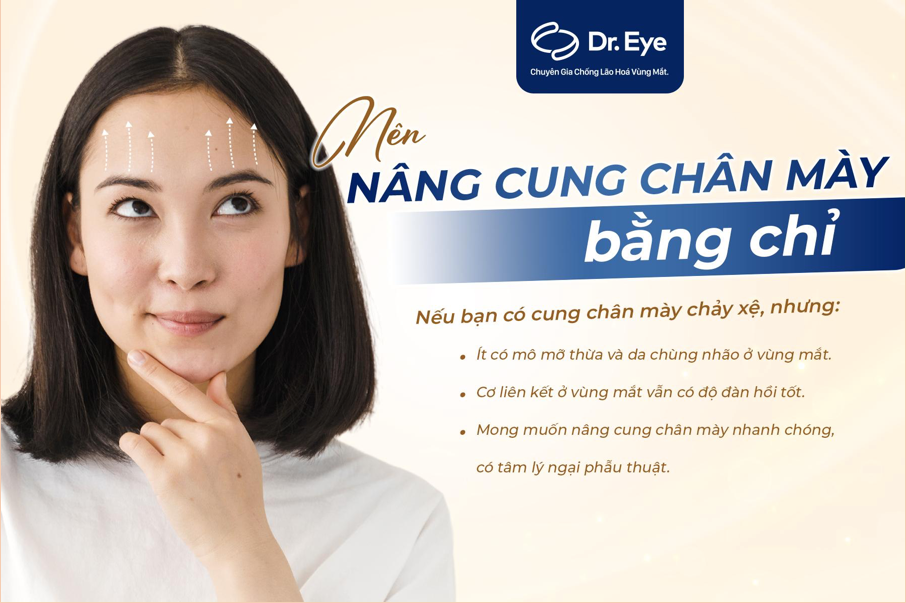 Theo chia sẻ của các bác sĩ chuyên khoa tạo hình thẩm mỹ tại Phòng khám Dr. Eye, nâng cung mày bằng chỉ là một giải pháp giúp khắc phục tình trạng chân mày chảy xệ hiệu quả và an toàn nếu thực hiện đúng kỹ thuật.