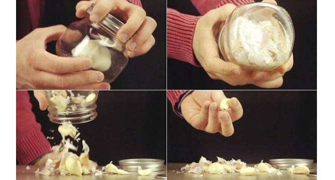 Muốn bóc tỏi một cách nhanh chóng, bạn chỉ cần cho củ tỏi vào lọ rồi xóc mạnh. Bằng cách này, vỏ sẽ bị tách ra một cách dễ dàng. (Để đạt hiệu quả tối ưu nhất thì nên dùng thớt hoặc đáy chiếc đĩa chà xát tỏi để tỏi tróc vỏ ra trước khi xóc).