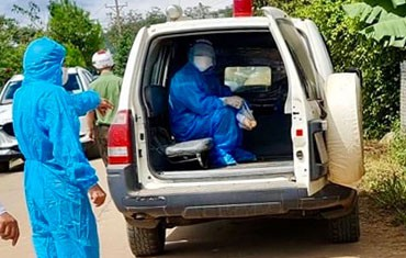 Ông P. được lực lượng y tế đưa về khu điều trị. Ảnh: V.L.