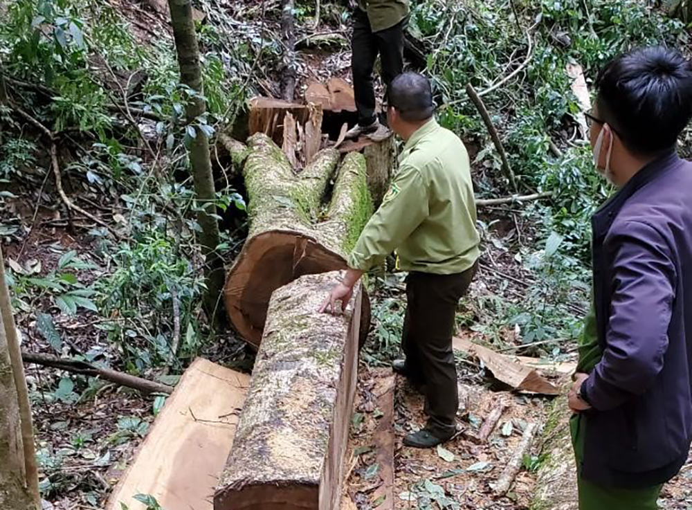 Qua khám nghiệm hiện trường, cơ quan chức năng xác định tổng khối lượng lâm sản bị thiệt hại là hơn 37,5m3 (gồm các loại gỗ dổi, hoa lý, huỳnh).