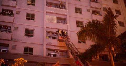 4. Khi ngoài cửa căn hộ đã bị bao vây bởi lửa không thể thoát ra ngoài, bạn nên nhanh chóng thoát ra chỗ thoáng như ban công, sân thượng; dùng các thiết bị chuyên dụng để thoát hiểm; tuyệt đối không nhảy từ cửasổ, ban công trên cao xuống; chỉ cần xuống dưới tầng bị cháy rồi từ đó dùng thang bộ đi xuống nơi an toàn.