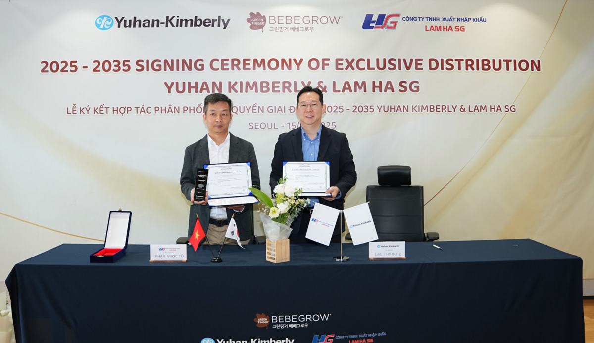 Ngày 16/9, tại Seoul (Hàn Quốc), Tập đoàn Yuhan-Kimberly (Hàn Quốc) và Công ty TNHH Xuất nhập khẩu Lam Hà SG (Việt Nam) đã chính thức ký kết thỏa thuận hợp tác chiến lược. Sự hợp tác đánh dấu bước ngoặt quan trọng trong hành trình đưa thương hiệu Greenfinger Bebegrow đến gần hơn với các gia đình Việt Nam. Theo thỏa thuận, Lam Hà SG sẽ là đơn vị phân phối độc quyền sản phẩm Greenfinger Bebegrow tại Việt Nam trong 10 năm, từ 2025 đến 2035.