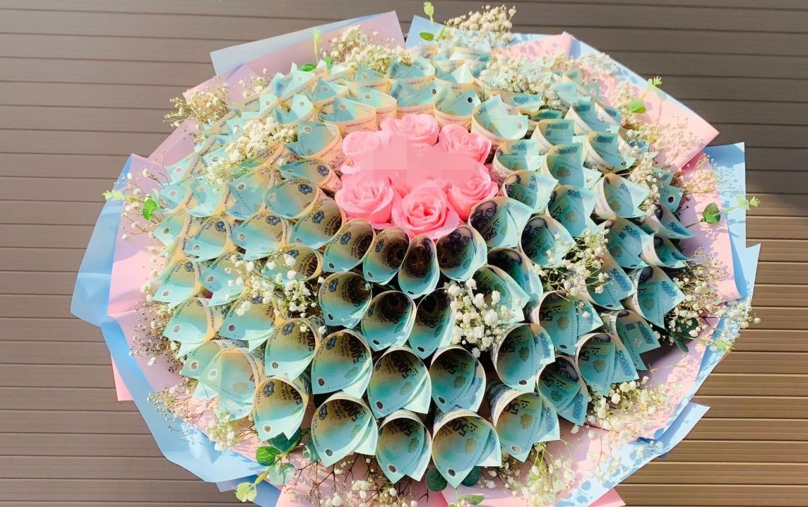 Ngoài hoa tươi, hoa bằng giấy, lụa... thời gian gần đây trên thị trường xuất hiện những bó hoa được làm bằng tiền với nhiều mệnh giá và cách bày trí khác nhau. Nhiều người thắc mắc làm hoa bằng tiền có phạm pháp hay không?