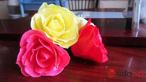 | Hoa đất sét đòi hỏi người làm sự khéo léo, tỉ mỉ và cách pha trộn nguyên liệu hợp lý để cánh hoa có độ tự nhiên, bền, đẹp. Ảnh Diệu Thùy |