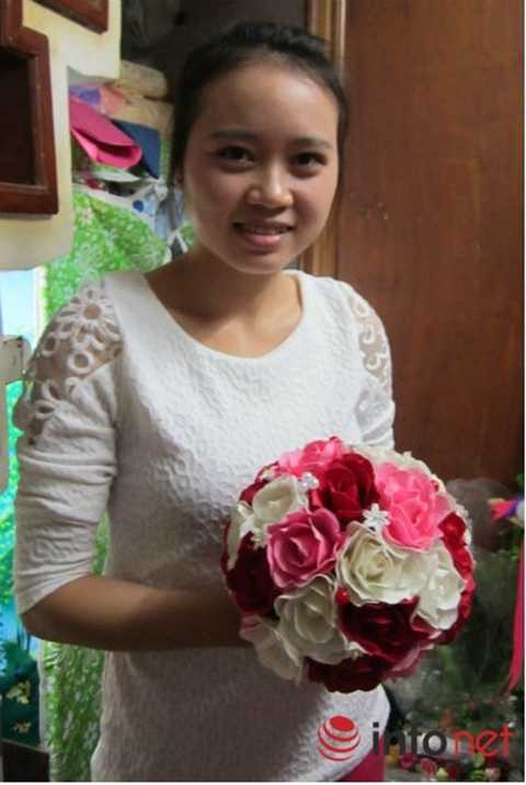 Đặc biệt là thời gian này có quá nhiều đơn đặt hàng, dù xưởng làm hoa thủ công của cô có 7-8 nhân công nhưng nhiều lúc vẫn không thể đáp ứng kịp, số lượng người đặt hoa cưới tăng khiến nhiều hôm rơi vào tình trạng “cháy” hàng.