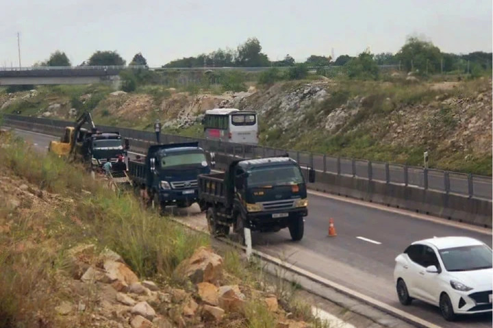 Hiện trường sạt lở đất đá đoạn qua cao tốc Vĩnh Hảo - Phan Thiết ngày 7/9. (Ảnh: B.H)