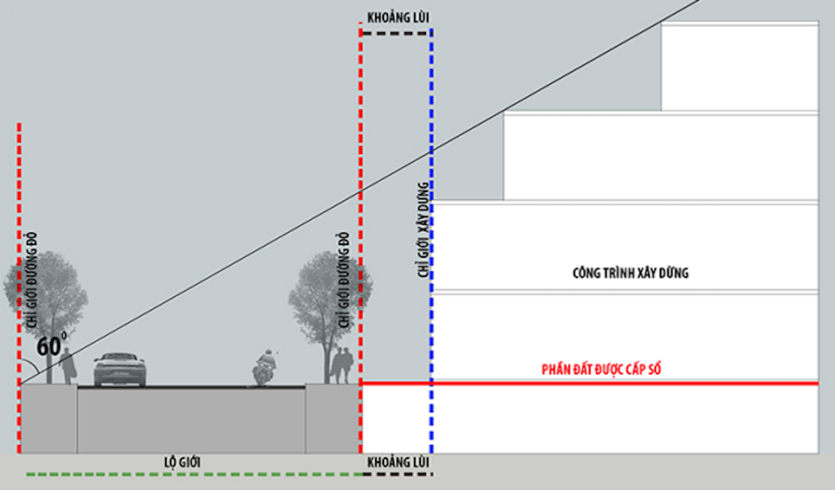 Khoảng lùi là khoảng không gian giữa chỉ giới đường đỏ và chỉ giới xây dựng. Theo Quy chuẩn kỹ thuật quốc gia về Quy hoạch xây dựng ban hành kèm theo Thông tư 01/2021/TT-BXD, khoảng lùi được xác định như sau:
