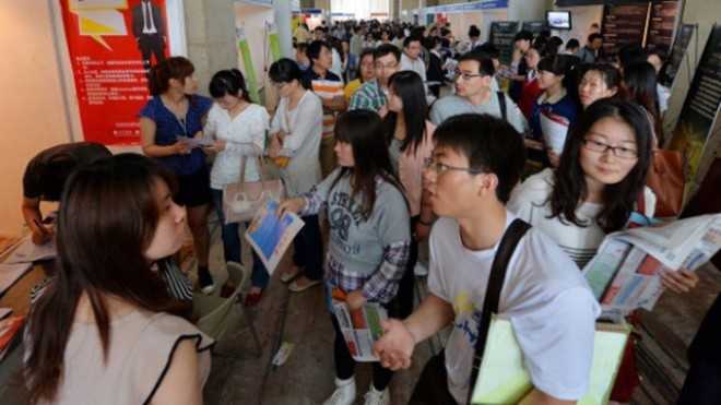 Giới trẻ Trung Quốc tại hội chợ tìm việc. Dân số đông cũng khiến tìm việc làm và giữ việc làm là một thách thức - Ảnh: AFP