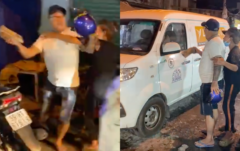 Khi một số người dân xung quanh can ngăn thì người đàn ông lên xe máy bỏ đi.
