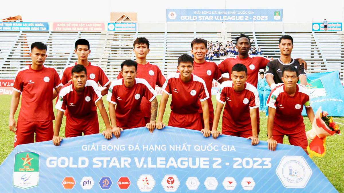 CLB Bình Thuận (áo đỏ) xếp thứ 5 ở giải Hạng Nhất 2023.