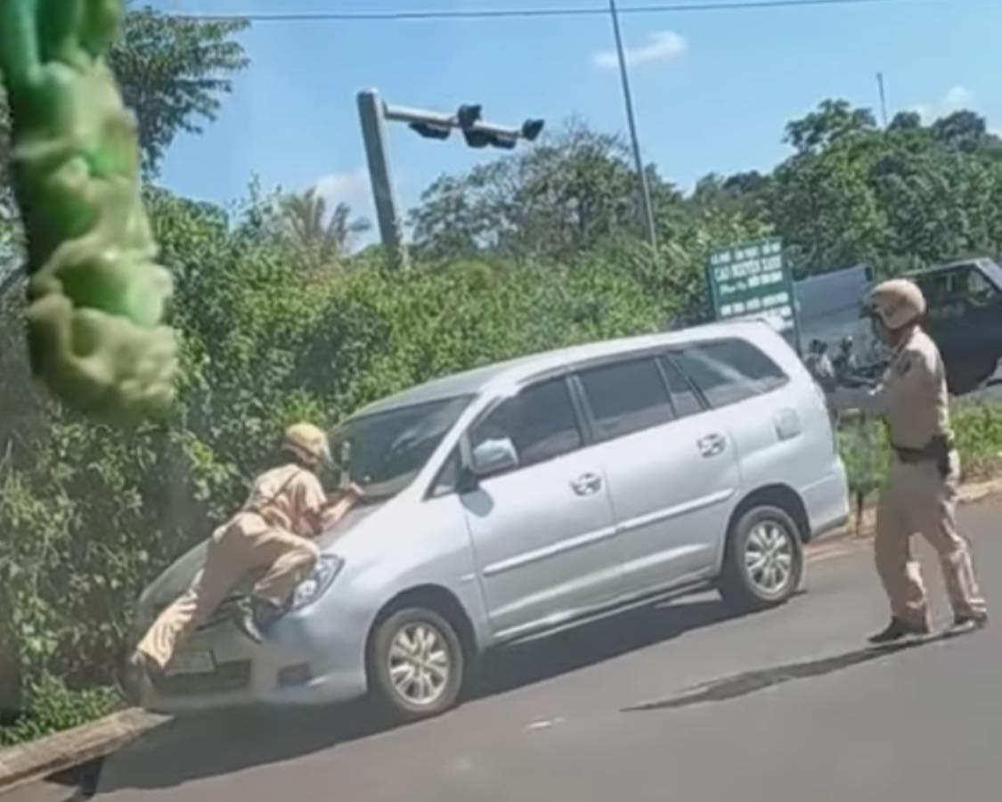 Khi đến đoạn khu vực đường Y Ngông giao đường tránh phía Tây TP Buôn Ma Thuột, một CSGT đã đứng trước đầu xe ô tô để yêu cầu tài xế dừng phương tiện. Tài xế vẫn di chuyển xe. Chiến sĩ CSGT này bám vào cần gạt mưa, đu trên nắp ca-pô.