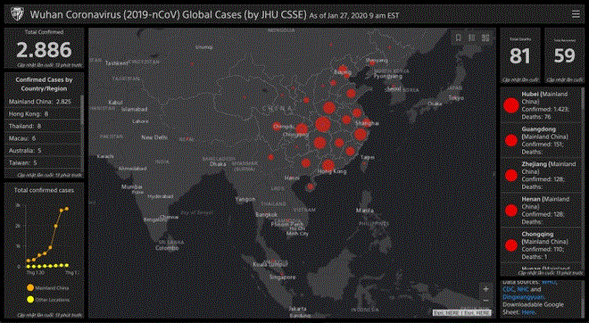 Dịch viêm phổi chủng mới 2019-nCoV do virus corona được phát hiện lần đầu tại Vũ Hán (Trung Quốc) vào cuối tháng 12/2019. Số liệu thống kê mới nhất cho thấy dịch bùng phát đã khiến ít nhất 80 ca tử vong, hơn 2.700 người mắc bệnh trong đó 461 người đang nguy kịch.