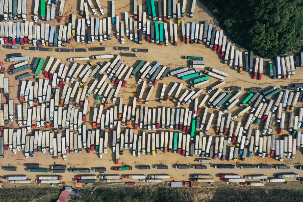 Hàng nghìn xe tải chở nông sản bị mắc kẹt tại các cửa khẩu ở Lạng Sơn thời gian qua. Ảnh: Thạch Thảo.