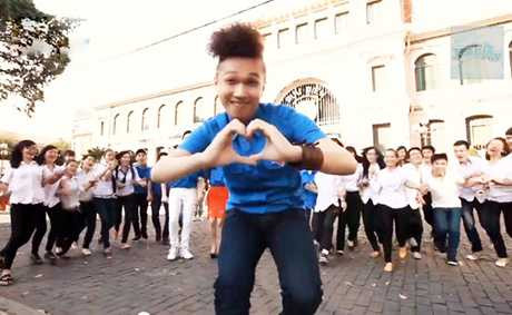 | Những hình ảnh ấn tượng của clip với sự tham gia của hàng nghìn bạn trẻ |