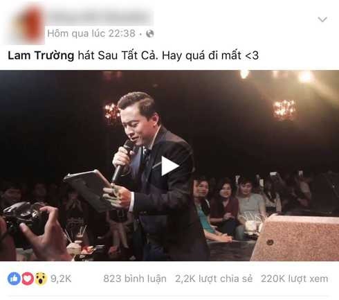 Có khá nhiều trang page khác cũng đăng tải clip Lam Trường hát Sau tất cả và nhận được lượt xem, chia sẻ, thích và bình luận 'khủng'