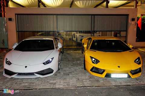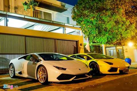 | Bốn chiếc Lamborghini cùng xuất hiện trước một căn biệt thự ở quận 7, TP HCM vào tối 19/5. Trong số đó có 3 chiếc được nhập khẩu chính hãng bao gồm hai chiếc Huracan và một chiếc Aventador màu trắng. Chiếc Aventador màu vàng là xe đầu tiên loại này tại Việt Nam. |
