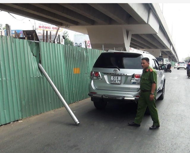 Trao đổi với phóng viên, ông Trương Tấn Sĩ (đại diện đơn vị thi công) cho biết, nguyên nhân sự cố là do chiếc ô tô chạy phía trên đâm vào lan can làm thanh sắt rơi xuống trúng phương tiện bên dưới. Sau sự cố, chiếc xe gây tai nạn đã rời khỏi hiện trường.