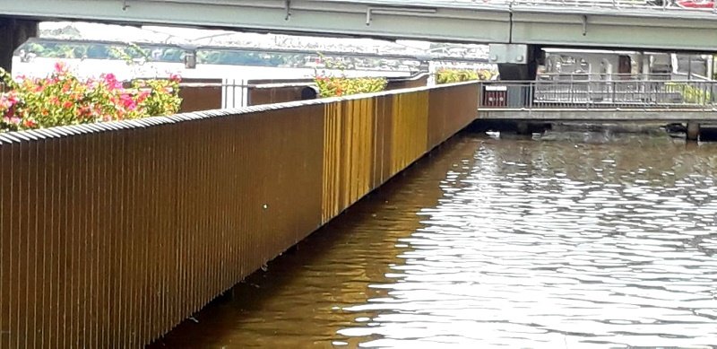 Nhìn từ trên cao xuống, các thanh lan can xỉn màu xen kẽ với những thanh lan can còn tươi sáng tạo ra màu sắc loang lổ, ảnh hướng đến thẩm mỹ của cây cầu.