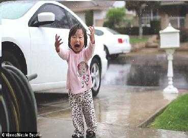 Thậm chí khi bị mẹ bắt vào trong nhà, bé bắt đầu khóc lóc, sau đó lại tìm cách trở ra ngoài để nghịch mưa.