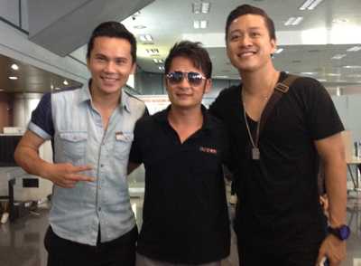| Ngoài gia đình, hai thành viên của Quả dưa hấu là Tuấn Hưng và Anh Tú cũng có mặt ở sân bay để đón người 'anh cả'. |