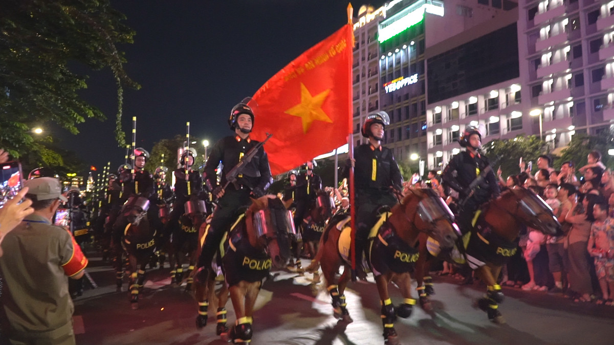 Lần đầu tiên Cảnh sát cơ động diễu hành kỵ binh tại phố đi bộ Nguyễn Huệ