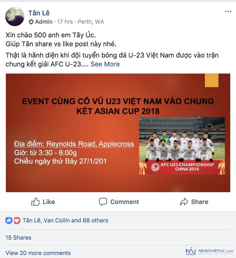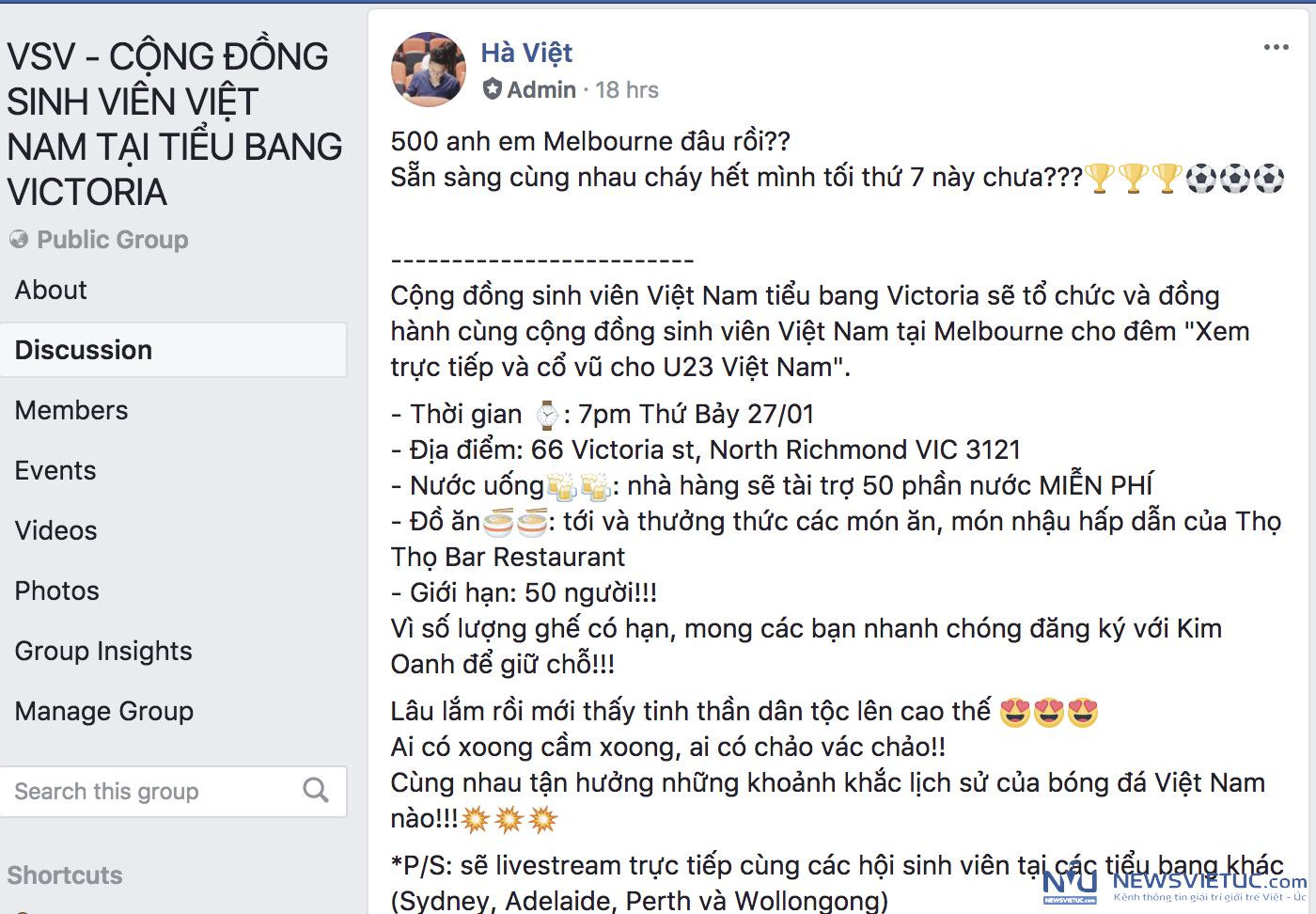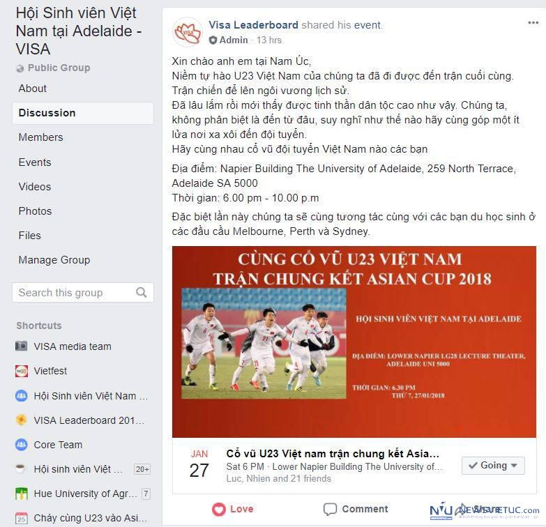Không chỉ những sinh viên ở Việt Nam mới có nhu cầu được xem trận đấu "trăm năm có một" này mà sinh viên, du học sinh trên toàn nước Úc cũng đã rầm rầm tổ chức nhiều hoạt động để cổ vũ cho các chàng trai của U23 Việt Nam.
