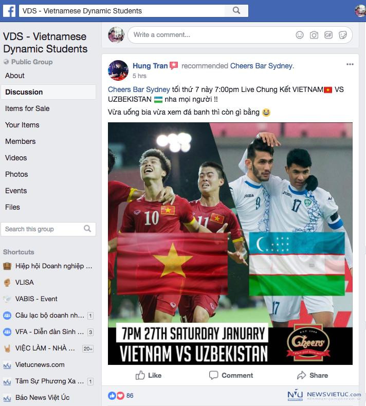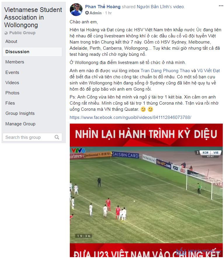 Có thể nói đây là một bước ngoặt có tính lịch sử về sự đoàn kết của cộng đồng sinh viên, du học sinh của Việt Nam tại Úc khi các Admin của các group sinh viên, du học sinh đại diện cho từng tiểu bang sẽ cùng liên kết với nhau để lên 1 kế hoạch giao lưu và cổ vũ cho đội tuyển nước nhà.